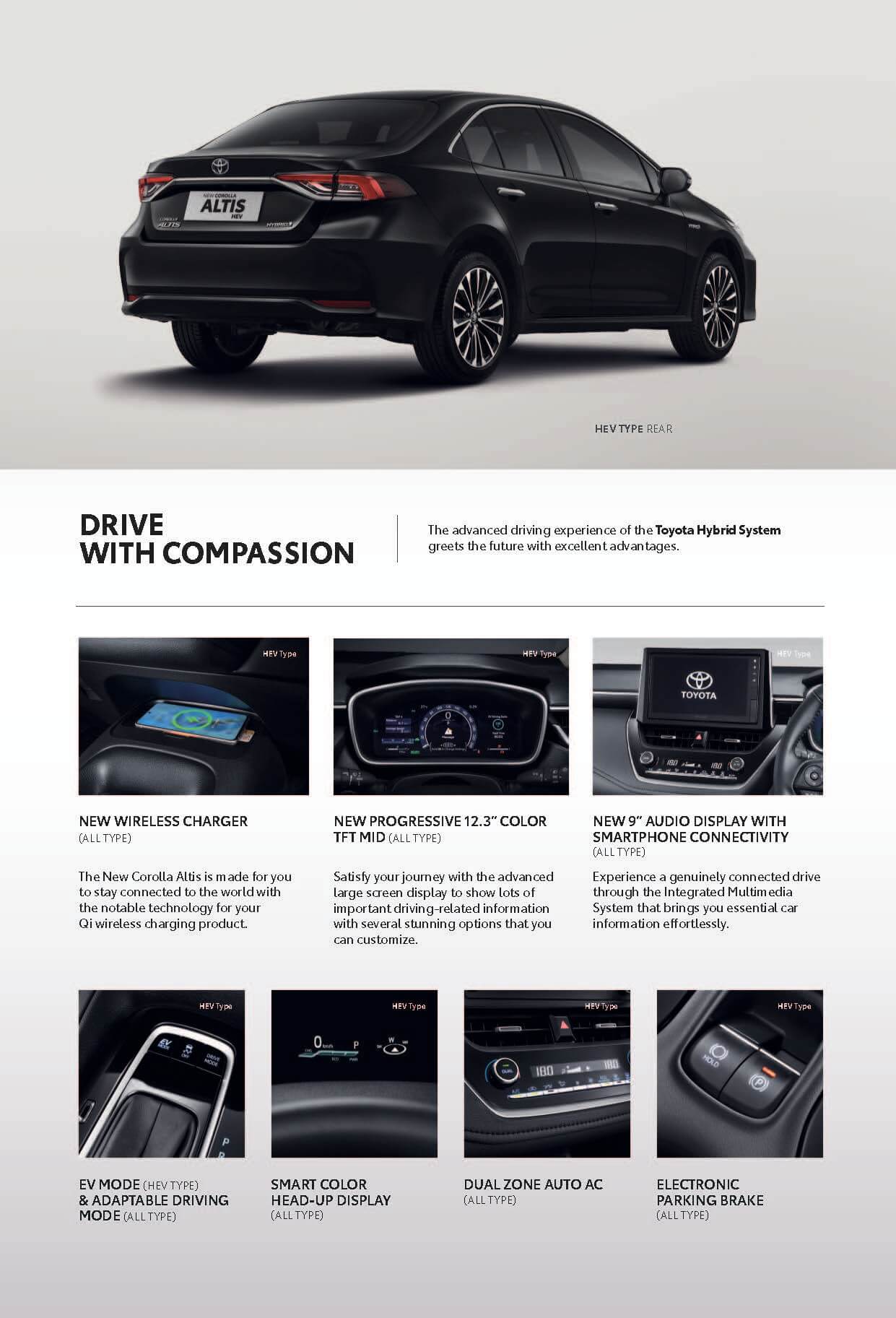 Sedan mewah dan berkelas, pilihan tepat bagi eksekutif muda seperti Anda. Fitur interior dan eksterior terbaru ini lebih canggih dan futuristik, sehingga tampak modern dan terkesan elegan. Terdapat fitur keamanan dan kenyamanan yang canggih pada mobil sedan New Corolla Altis ini.