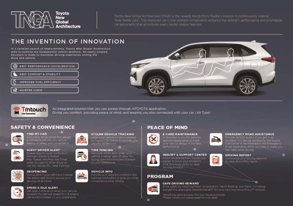 Melalui Toyota Safety Senses (TSS) dan T Intouch, akan memberikan perlindungan dan membuat Anda tetap terhubung dengan mobil Anda. Berkomitmen untuk menghadirkan mobil dengan berbagai kelebihan dan kenyamanan untuk Anda dan keluarga.