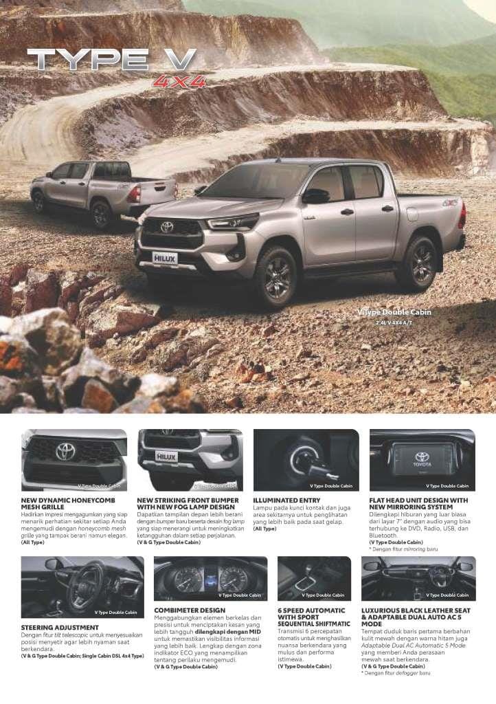 Toyota New Hilux D Cab merupakan mobil dengan peningkatan yang semakin canggih. Dengan desain eksterior yang semakin macho atau maskulin, cocok untuk anda gunakan aktivitas pekerjaan harian. Berbasis mini truck memberikan kemudahan untuk anda yang memiliki usaha atau bisnis berbagai bidang dan mampu membawa barang kemanapun anda pergi.